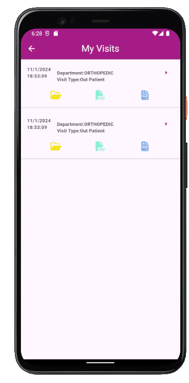 Patient can access their hospital visit details in a easy-to-esay understand dashboard on our mobile app.